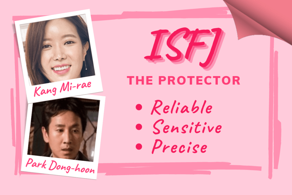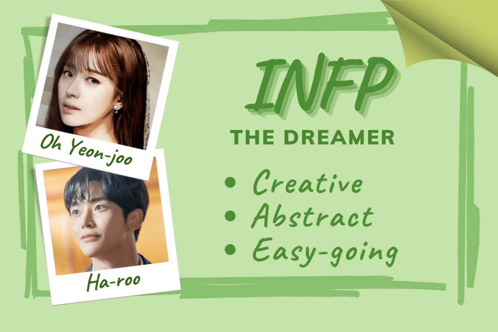 Εμπνευσμένο και από τις θεωρίες του Carl Jung, το MBTI διακρίνει 16 τύπους προσωπικότητας, που συνήθως ομαδοποιούνται σε 4 κατηγορίες (NFs, SFs, NTs και STs). Κάθε μία από αυτές τις προσωπικότητες αποτελείται από ένα σύμπλεγμα 4 χαρακτηριστικών μεταξύ των εξής ζευγαριών: Εσωστρέφεια (I) ή Εξωστρέφεια (E), Διαίσθηση (N) ή Αίσθηση (S), Συναίσθημα (F) ή Σκέψη (T) και Κρίση (J) ή Αντίληψη (P). Έχοντας μελετήσει αρκετά το MBTI στα πλαίσια της διαρκούς έρευνάς μου ως συγγραφέα και αφότου επεξεργάστηκα ένα ευρύ φάσμα κορεατικών σειρών διαφόρων ειδών, δημιούργησα τις παρακάτω κάρτες infographic για καθέναν από τους 16 τύπους προσωπικότητας MBTI, εμπνευσμένες από τους πιο αντιπροσωπευτικούς πρωταγωνιστές.